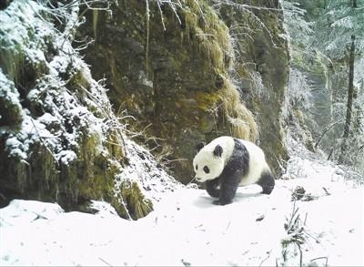 大熊猫受威胁程度等级由“濒危”降为“易危”。图为大熊猫国家公园北川小寨子沟片区用红外相机拍摄的野生大熊猫。新华社发